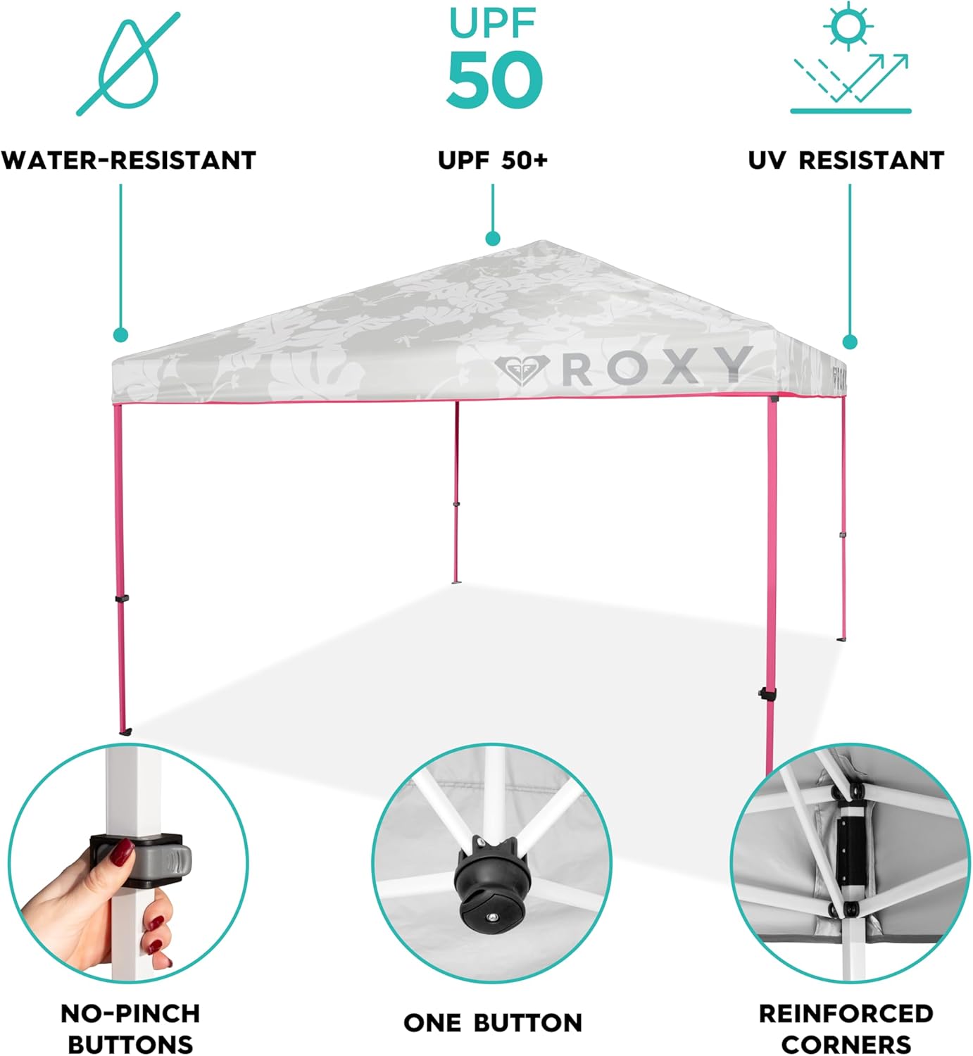 Designed with convenience in mind, the ROXY Pop Up Canopy features a one-push setup mechanism, allowing you to easily assemble the canopy in no time. The UPF 50+ fabric provides excellent sun protection, keeping you and your loved ones safe from harmful UV rays.